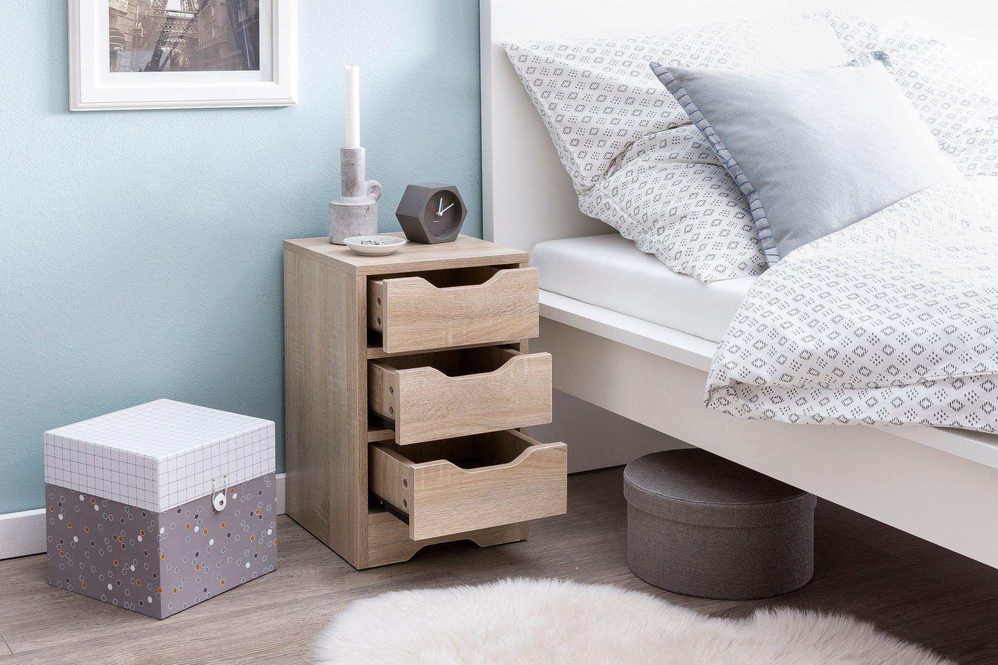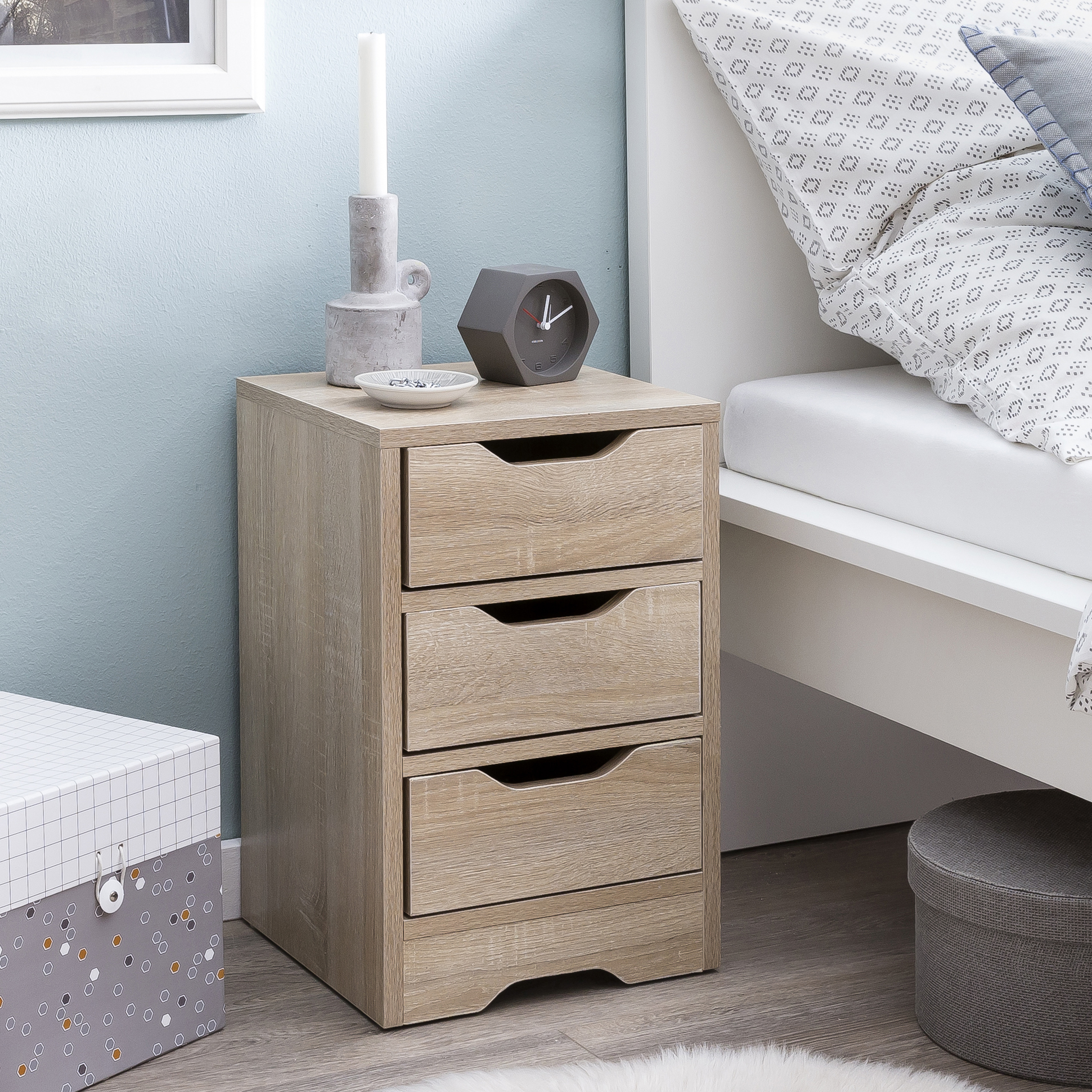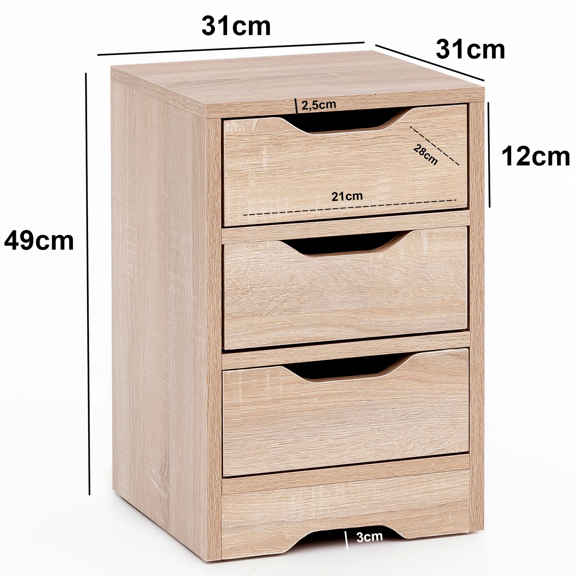 Comodino Sonoma marrone 31x49x31 cm con 3 cassetti | Mobiletto camera da letto moderno