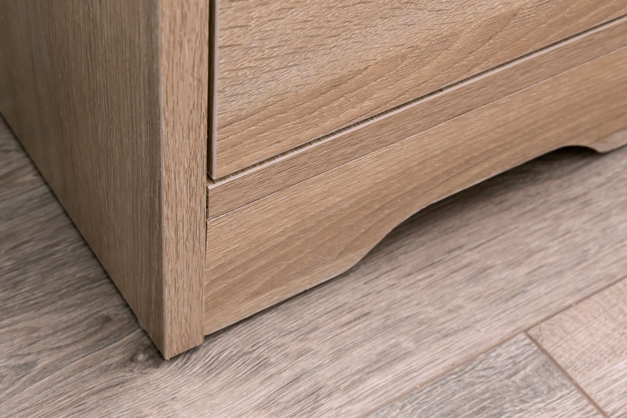 Dimensioni compatte di 31 cm di larghezza, 49 cm di altezza e 31 cm di profondità lo rendono perfetto per spazi ridotti. Il piano superiore offre ampio spazio per lampade da comodino e oggetti personali.