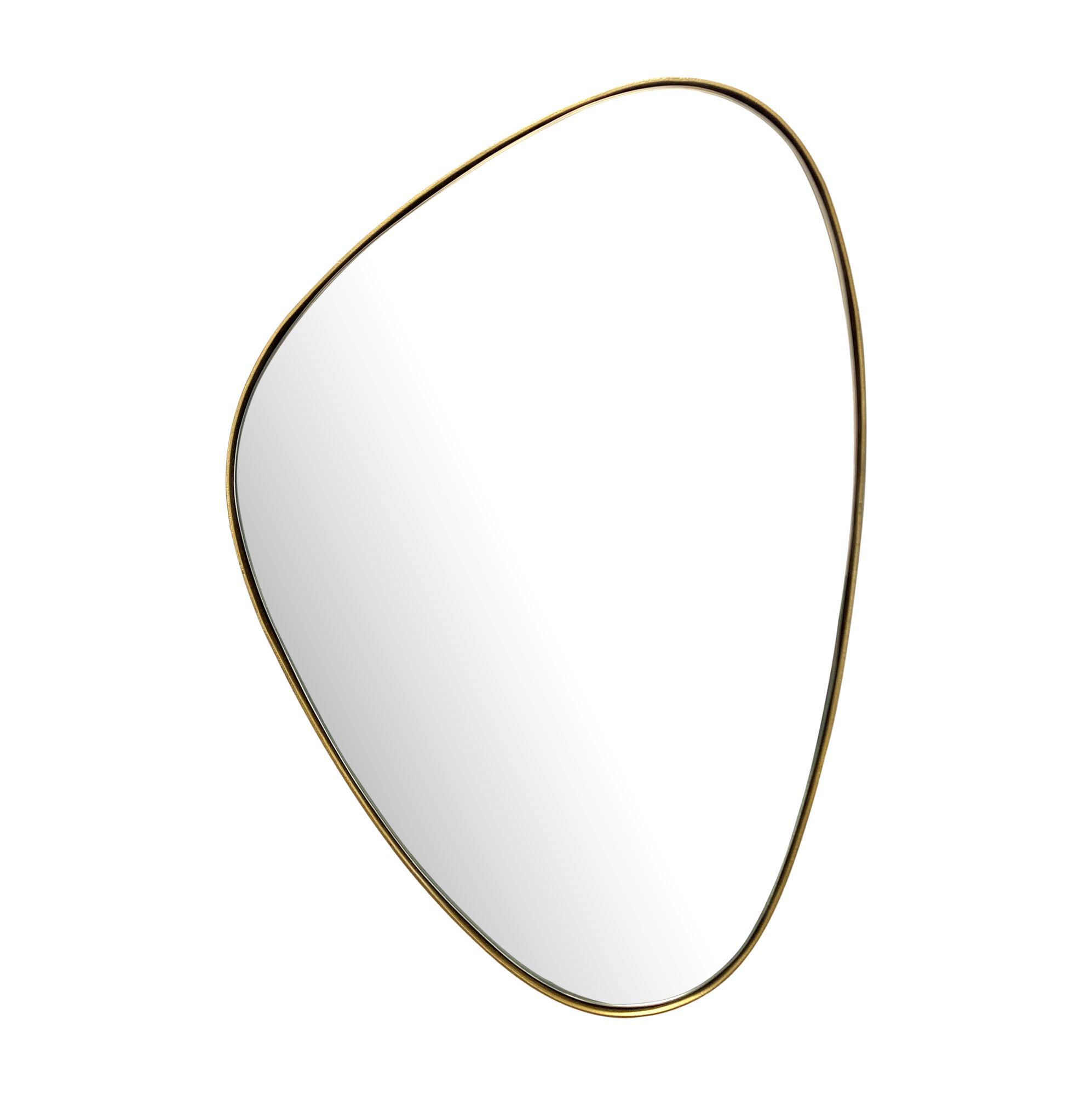 Questo specchio da parete asimmetrico unisce design contemporaneo e accurata lavorazione artigianale con cornice in metallo dorato. La forma unica e la finitura artigianale donano carattere ed eleganza a qualsiasi ambiente.