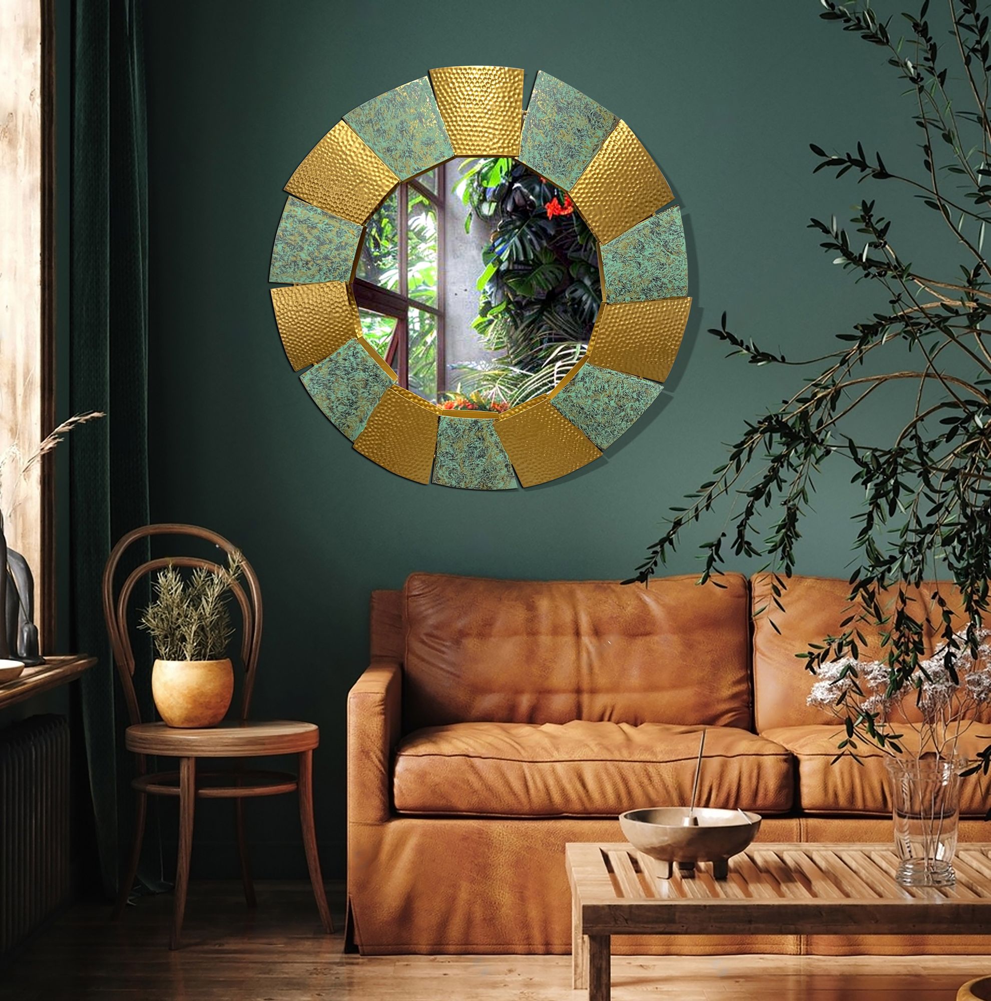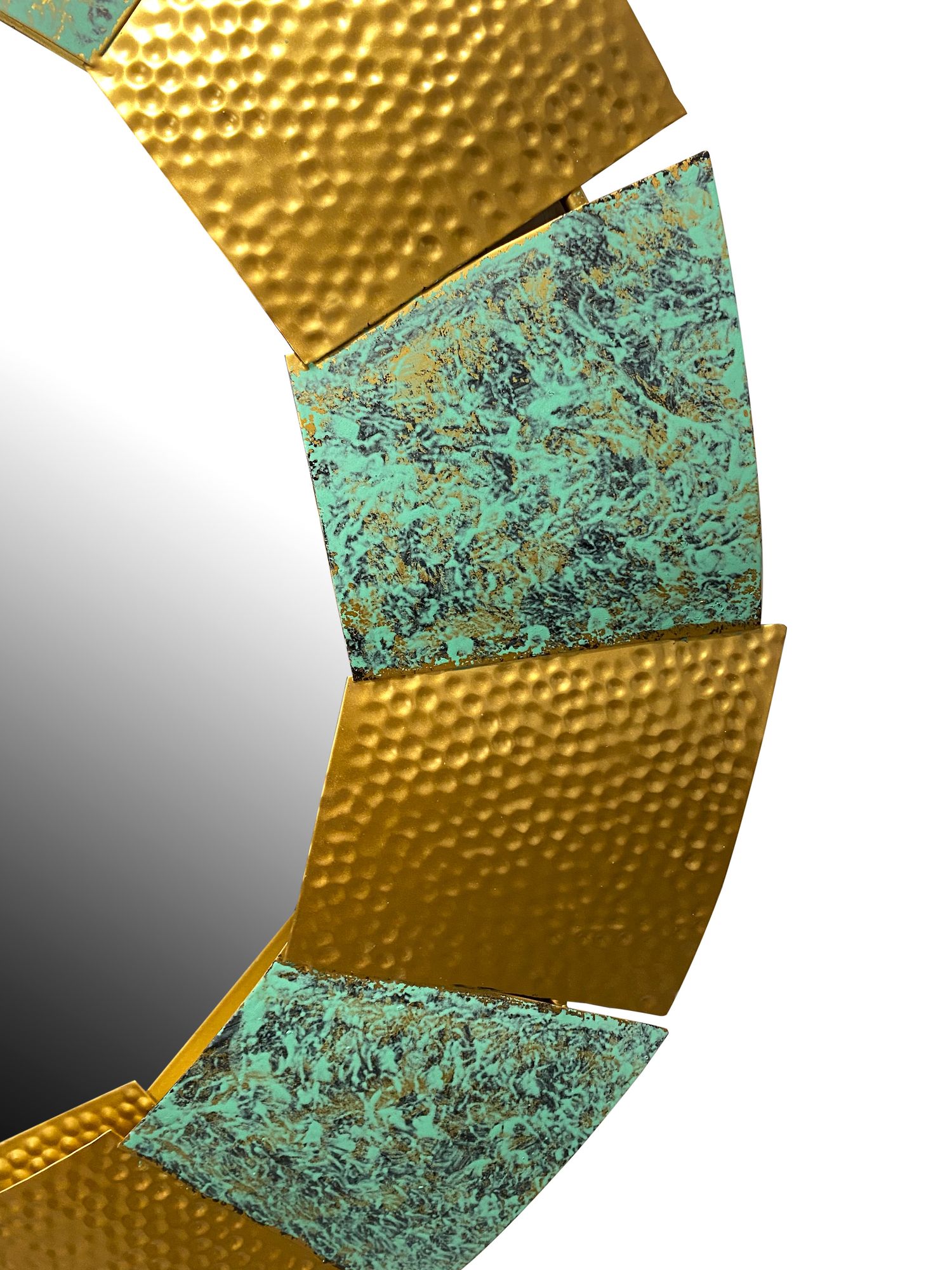 Scoprite questo specchio da parete moderno con motivi martellati multicolore che dona un tocco artistico unico al vostro ambiente. Ideale per soggiorni, corridoi o uffici.