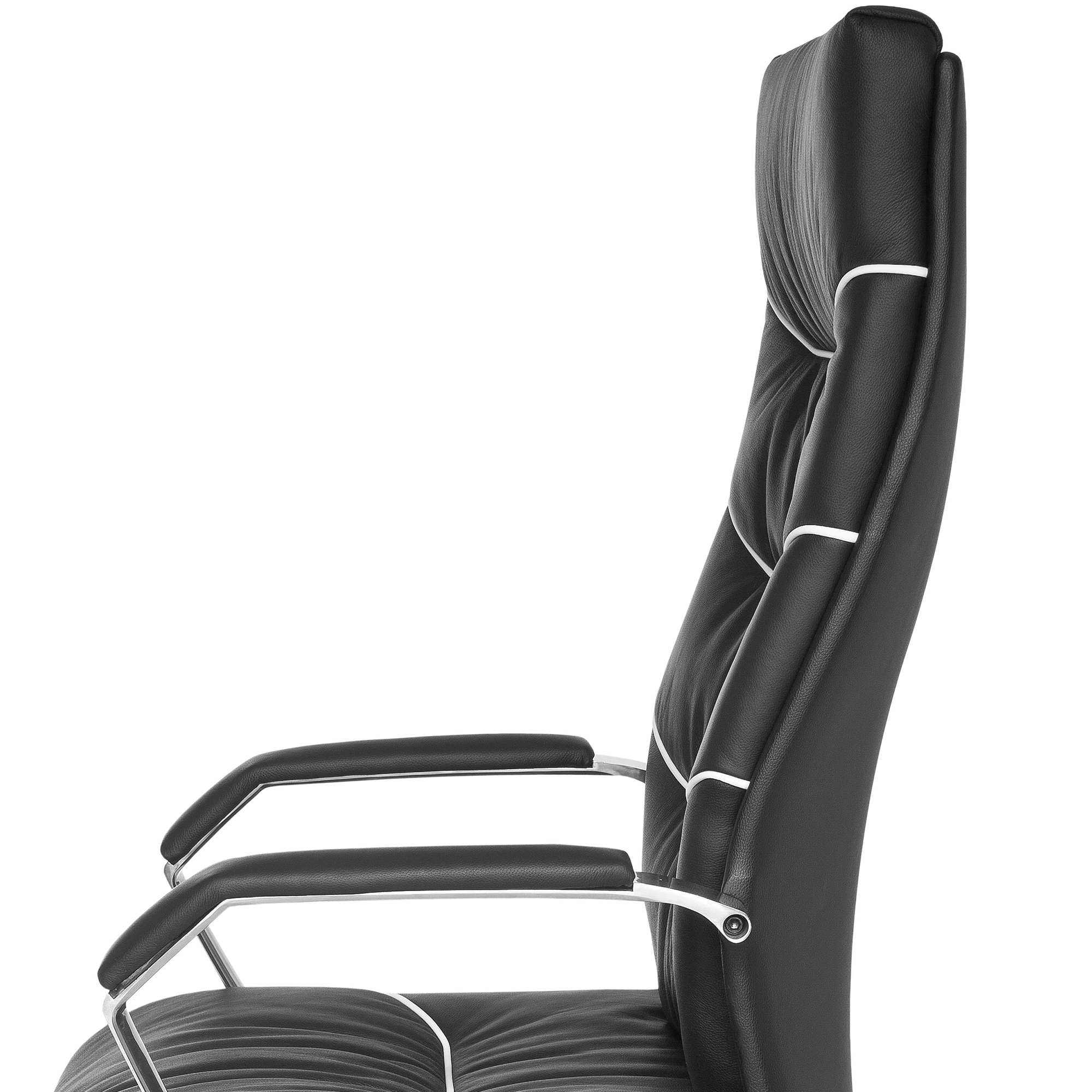 Info sui prodotti "Poltrona da ufficio XXL in vera pelle nera | Schienale alto, poggiatesta | Dimensioni 60x55x118-126 cm"