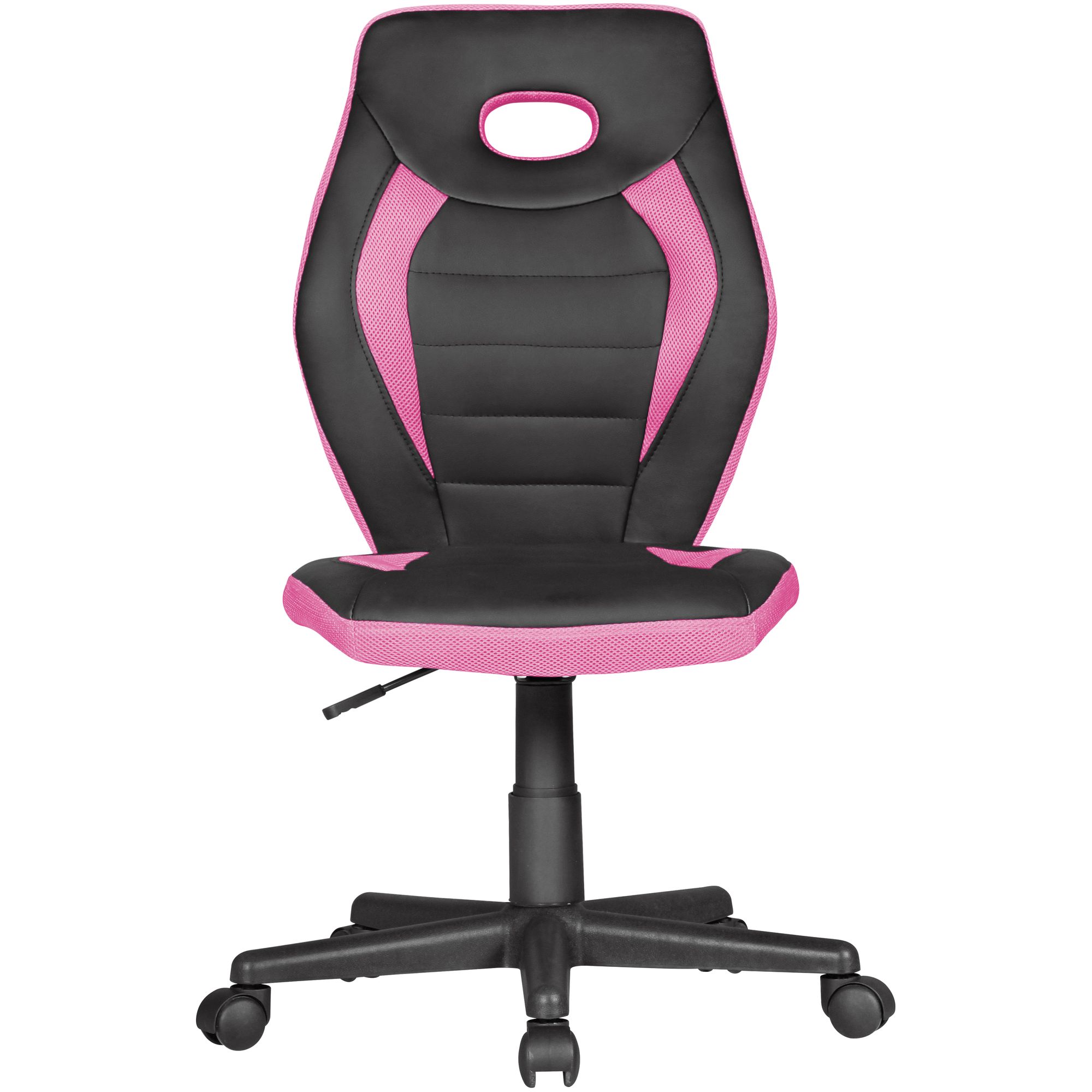 La sedia girevole LUAN per bambini unisce design moderno e funzionalità per bambini dai 6 anni in su. Dotata di schienale alto con supporto spalle integrato, offre comfort superiore. Rivestimento in similpelle nera e mesh rosa, stile e resistenza garantiti. Altezza regolabile da 41 a 53 cm, perfetta per crescere con il bambino.
