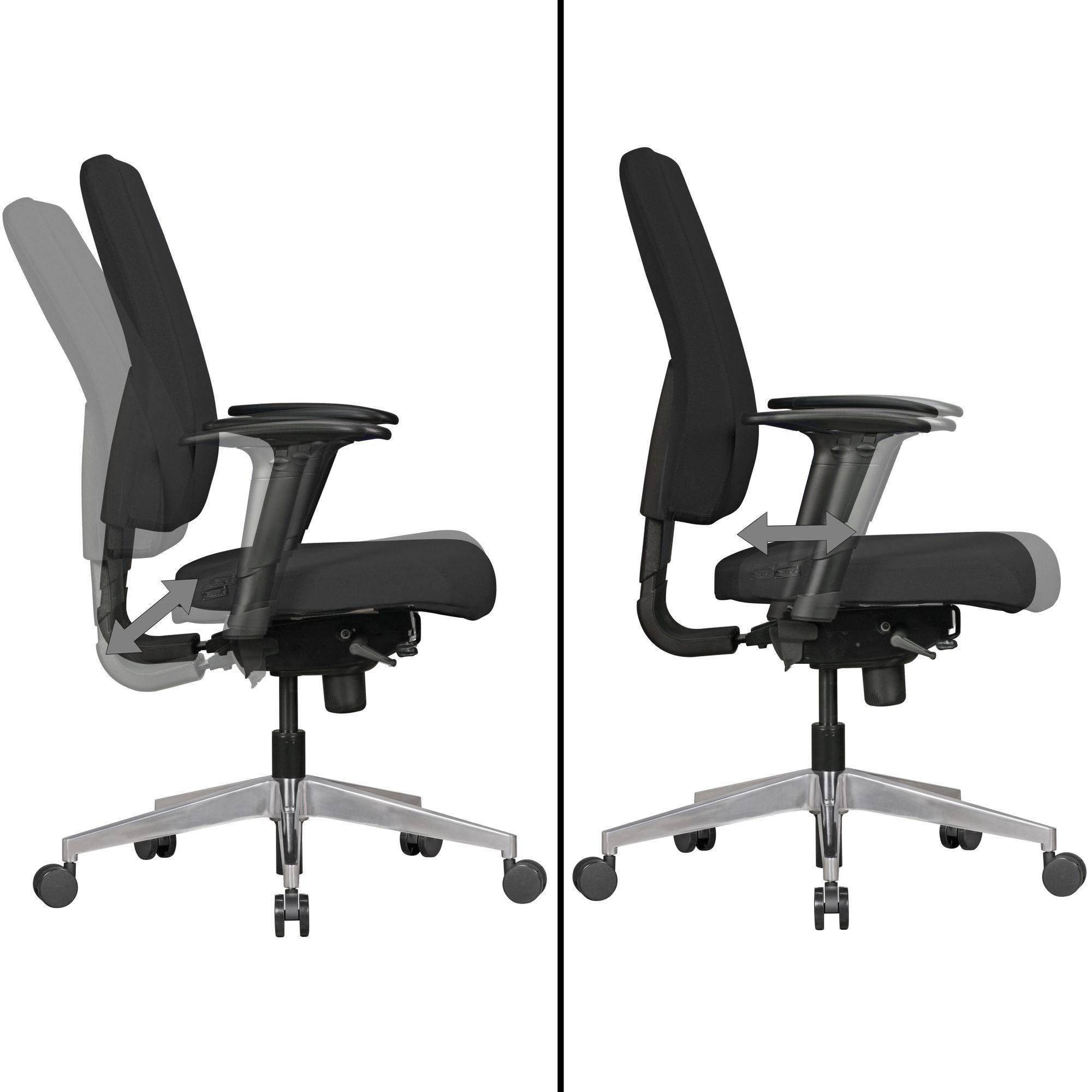 Braccioli regolabili in altezza e meccanismo sincrono a 3 punti offrono una seduta personalizzata e un eccellente supporto lombare. La profondità della seduta è regolabile di 5 cm per un comfort su misura.