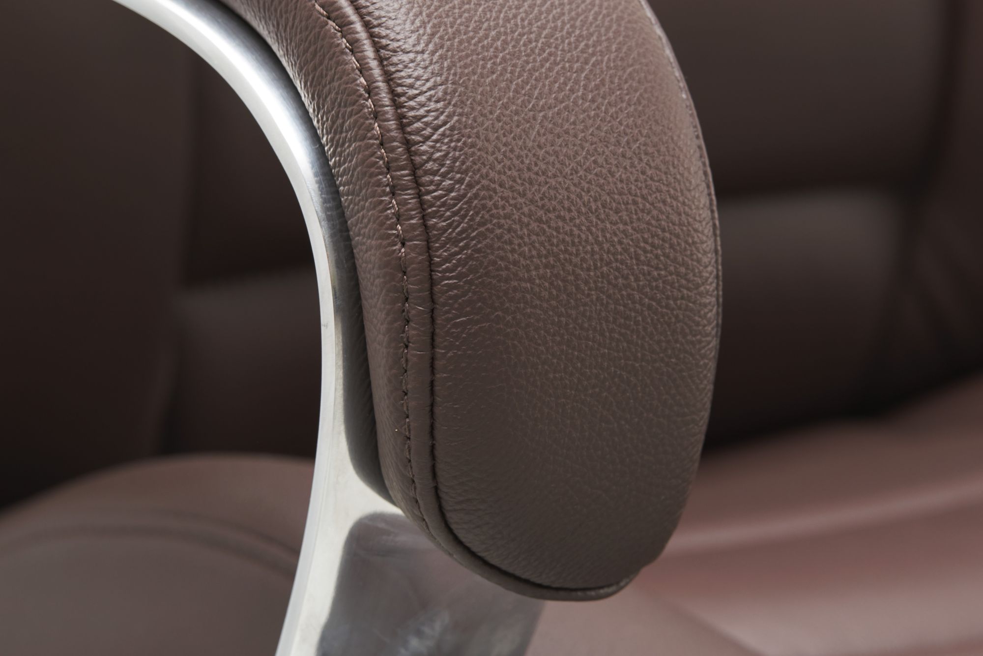 Materiali: pelle vera all’interno, similpelle all’esterno e sui braccioli, alluminio lucido.
