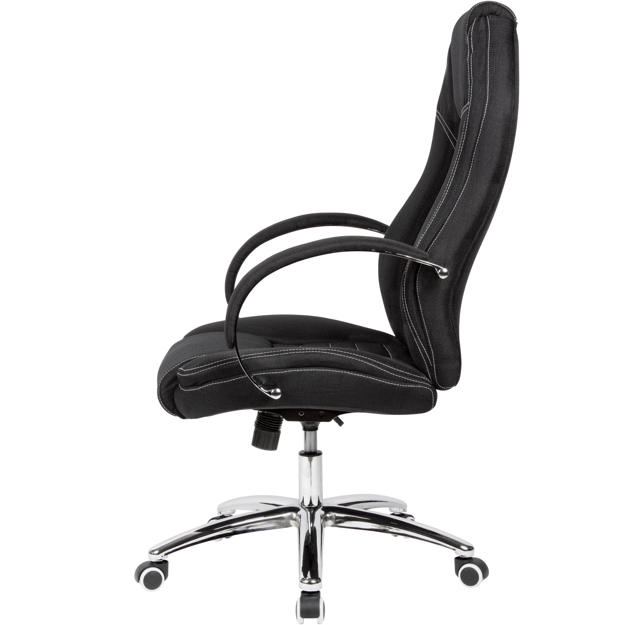 Info sui prodotti "Sedia da ufficio girevole | Tessuto nero effetto jeans | Altezza 113,5-121,5 cm, Larghezza 65 cm, Profondità 69 cm"
