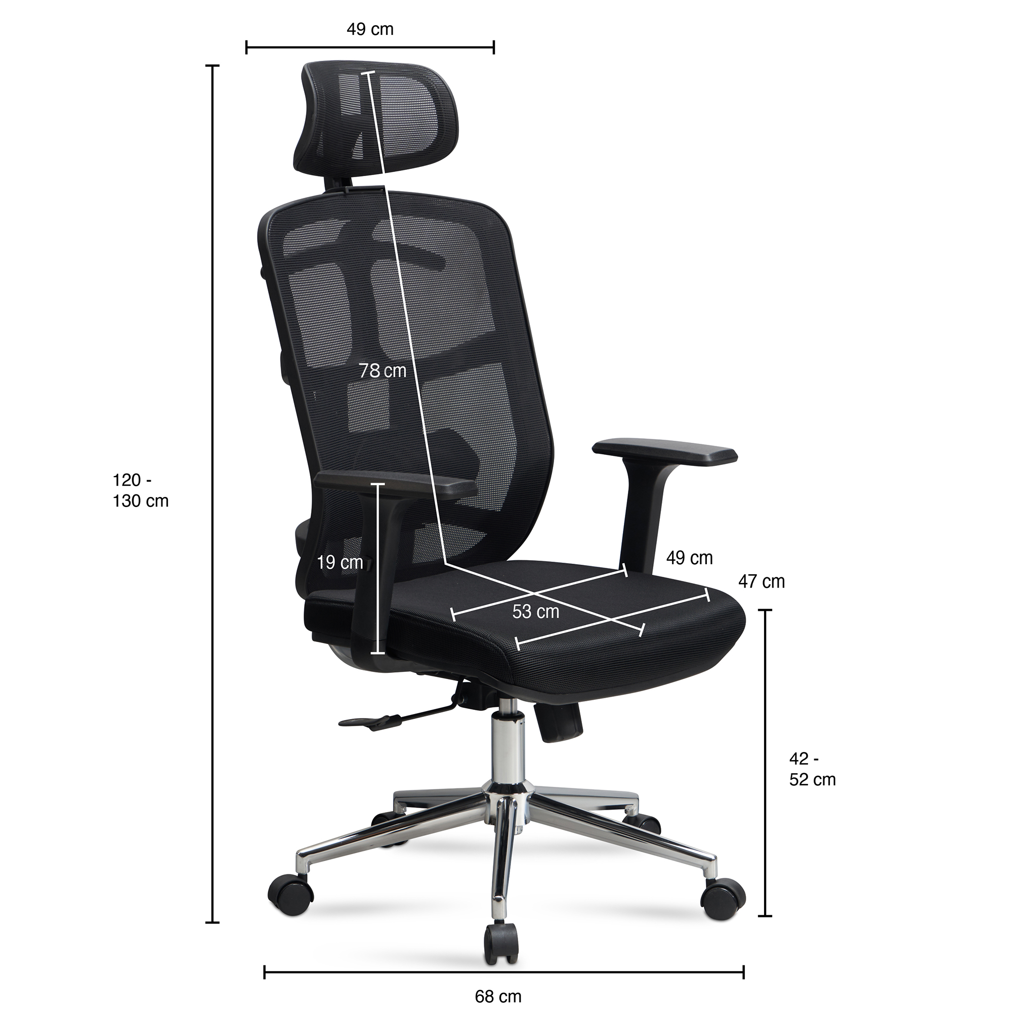 Info sui prodotti "Sedia da ufficio nera in mesh | Ergonomica con poggiatesta e supporto lombare | Dimensioni: A 120-130 cm, L 68 cm, P 68 cm"