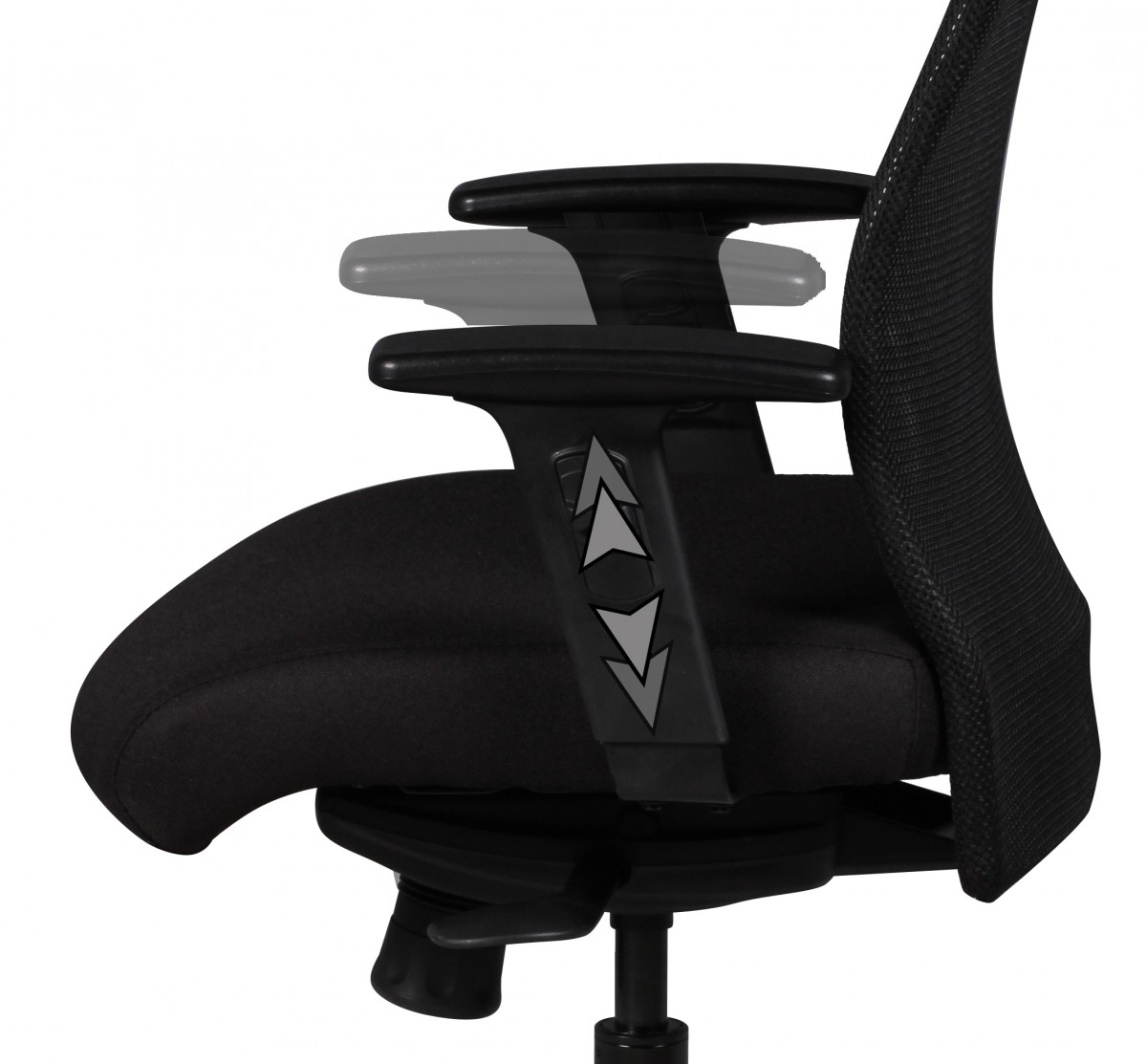 I braccioli sono regolabili in altezza su 7 posizioni con imbottiture Softpad. L’altezza della seduta varia da 47 a 59 cm. La base robusta in nylon con diametro di 70 cm assicura massima stabilità.