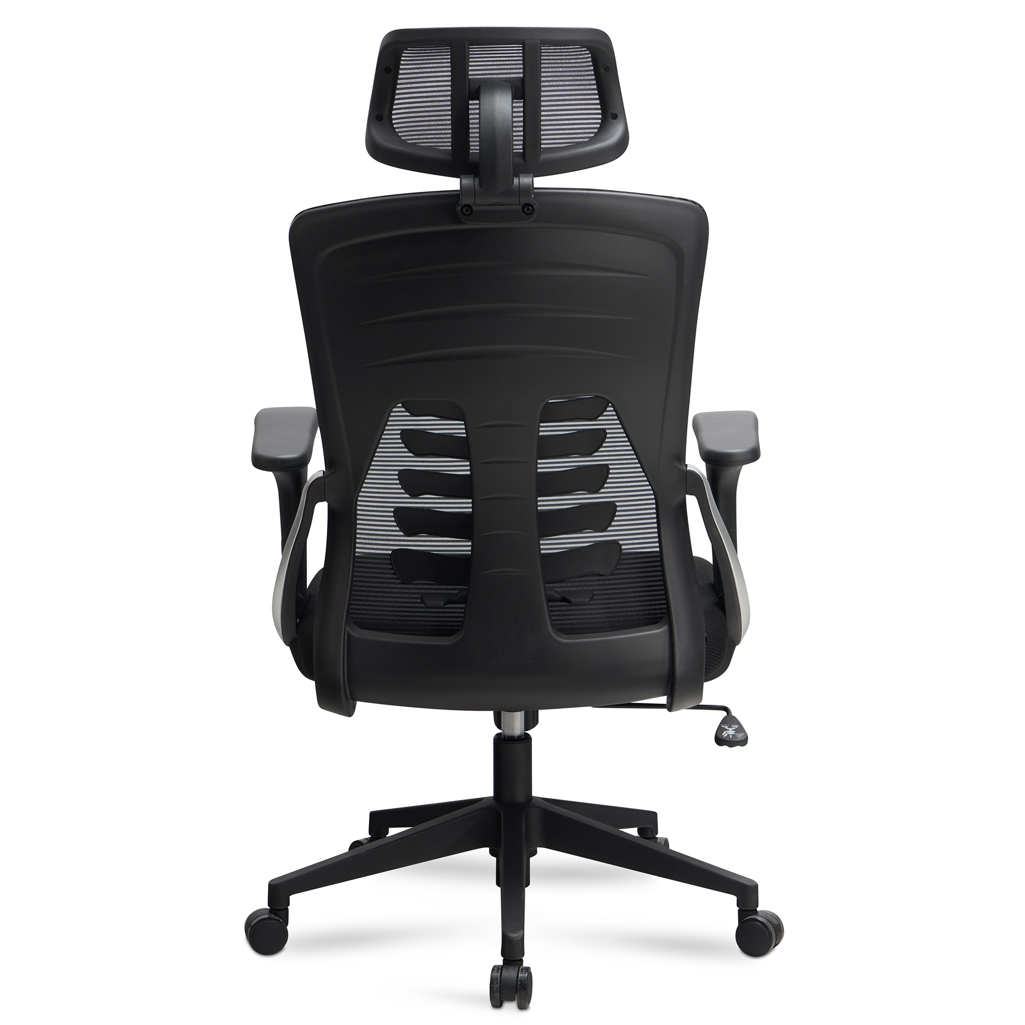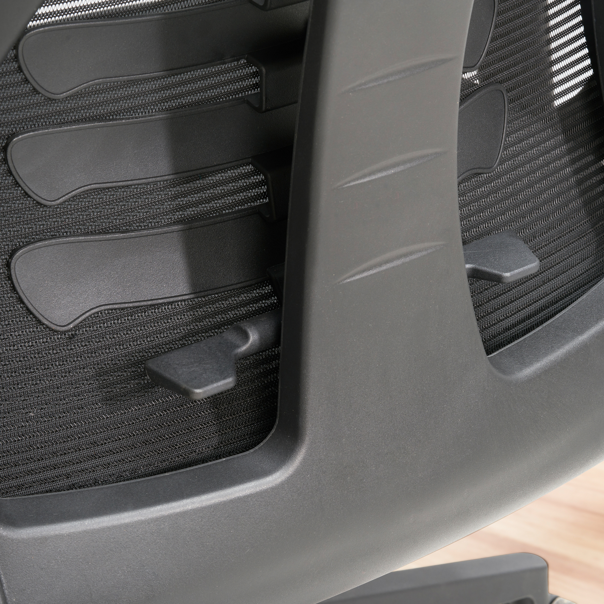 - Materiali: mesh 100% poliestere per seduta, schienale e poggiatesta; plastica per base e braccioli