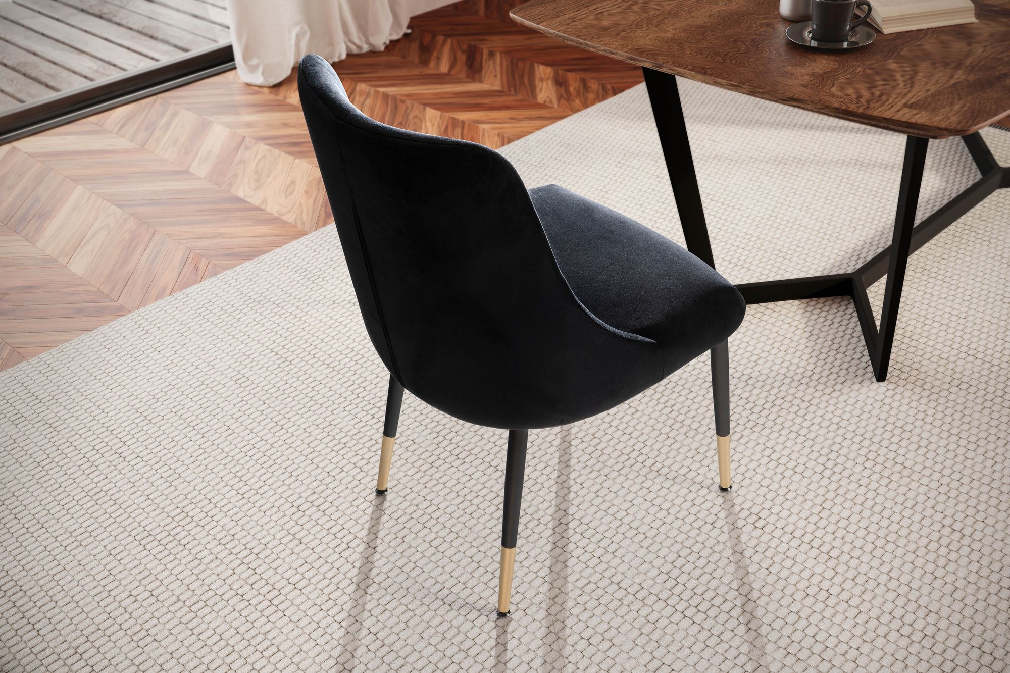 Info sui prodotti "Sedia da pranzo in velluto nero con gambe nere | 49x56x85 cm | Poltrona moderna imbottita"