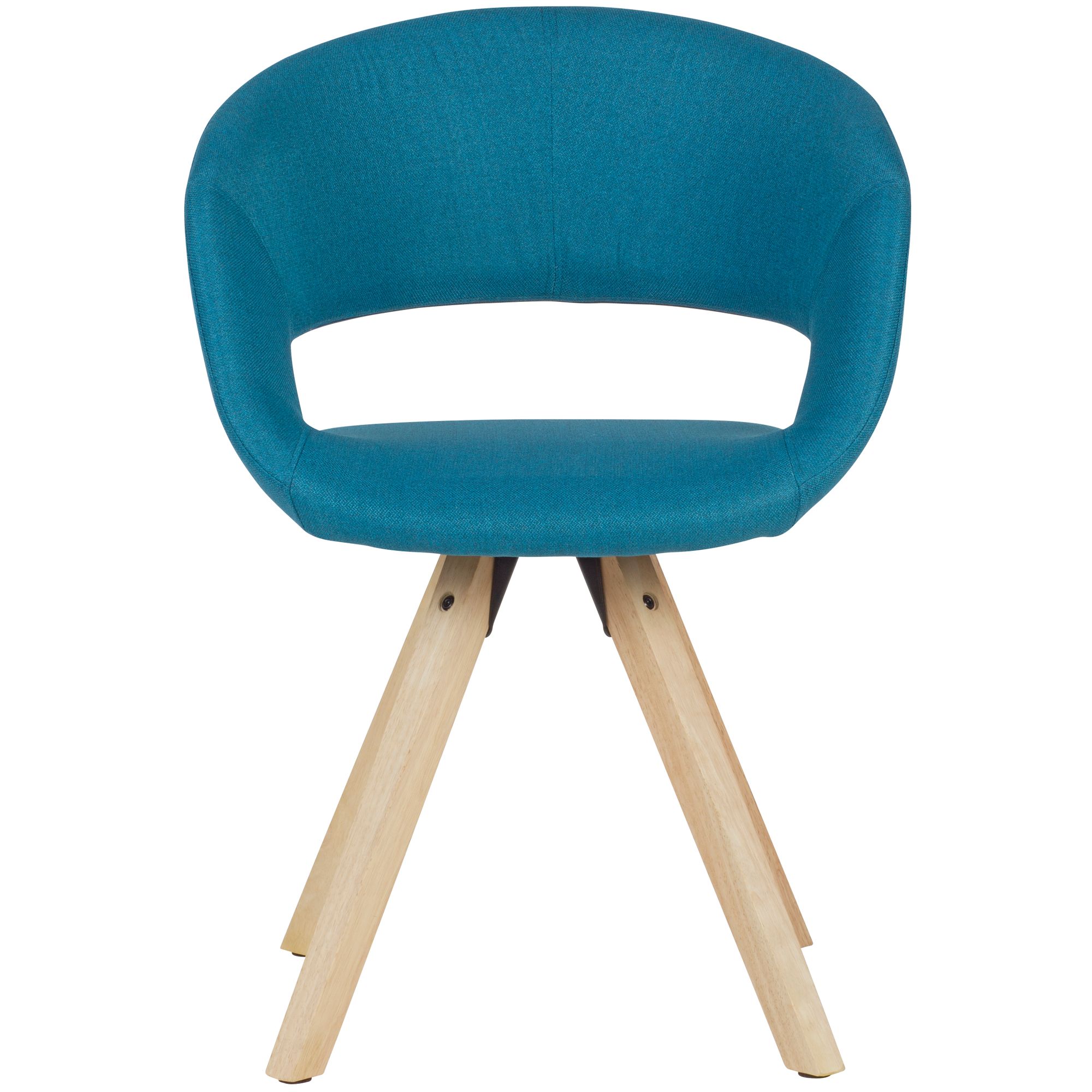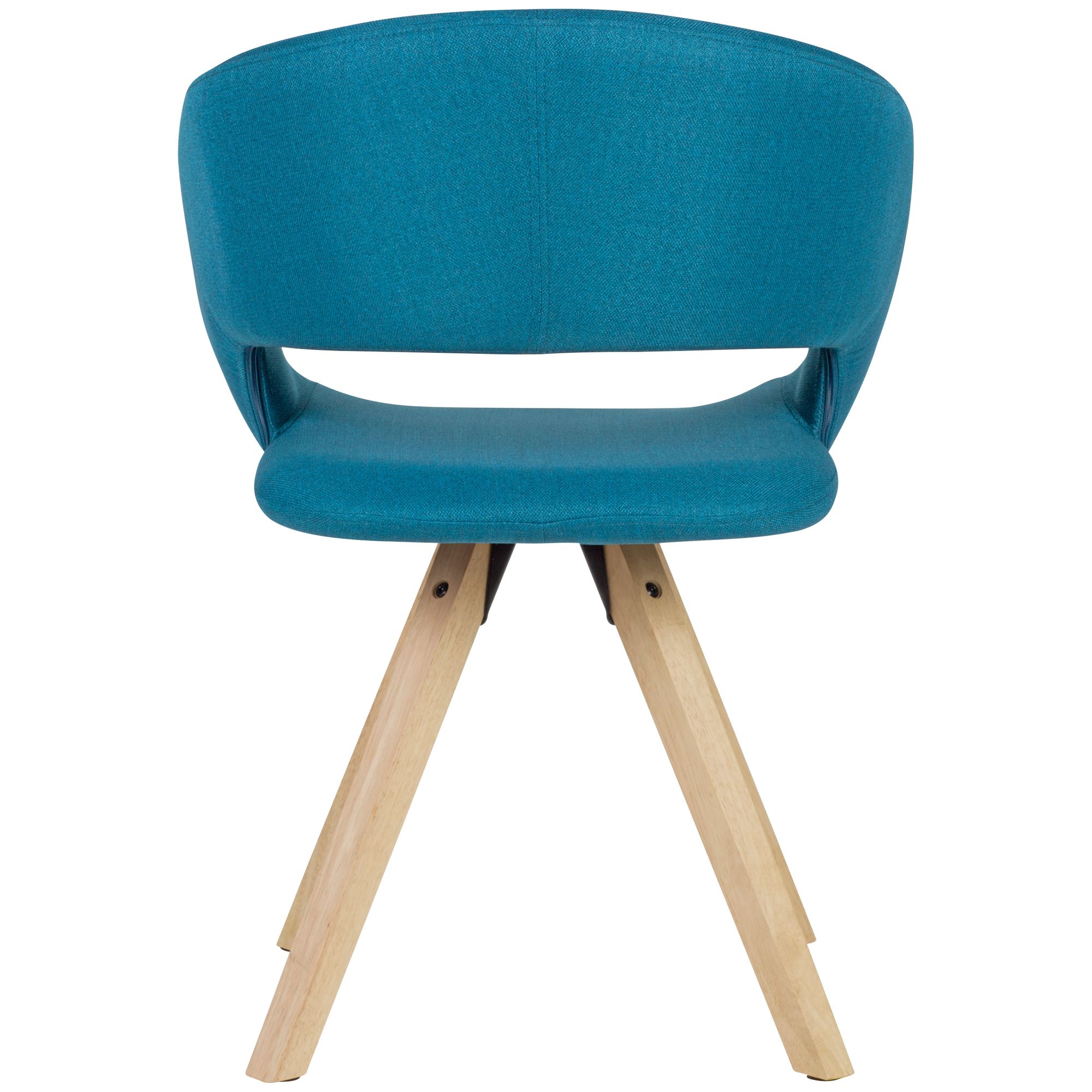 Scopri questa sedia da pranzo in stile retrò con seduta curva imbottita in tessuto color petrolio. Le gambe in legno massello di hevea garantiscono robustezza e completano perfettamente il look vintage.
