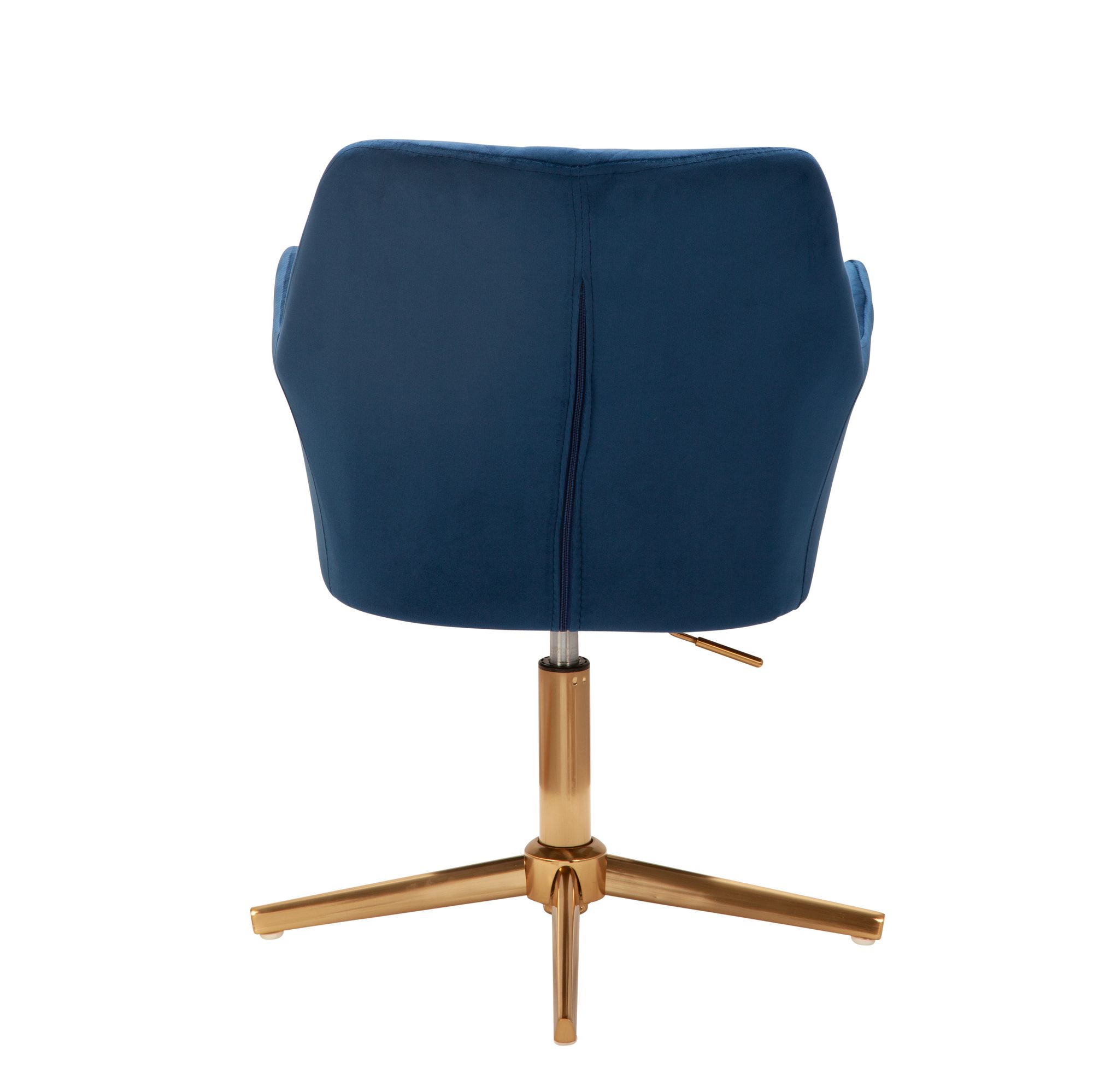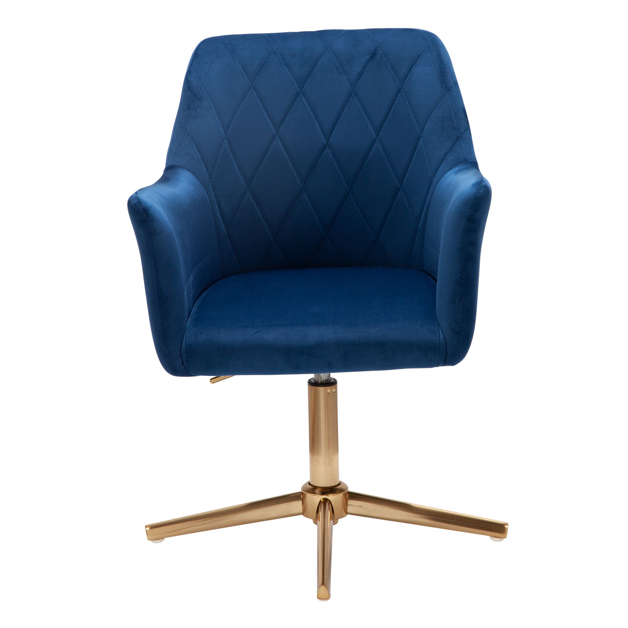 Sedia da ufficio in velluto blu scuro | Struttura in metallo dorato | Altezza regolabile 80-97 cm