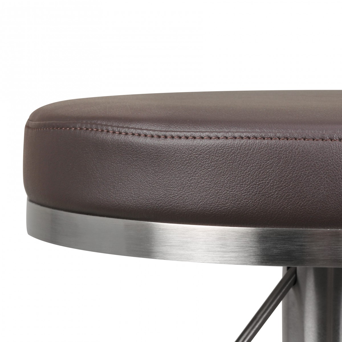 Info sui prodotti "Sgabello da bar marrone similpelle acciaio inox regolabile 57-82 cm | Seduta girevole 360° design moderno"