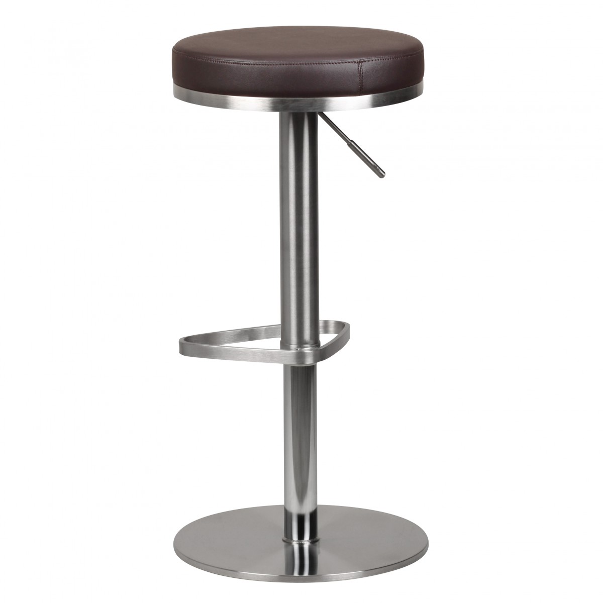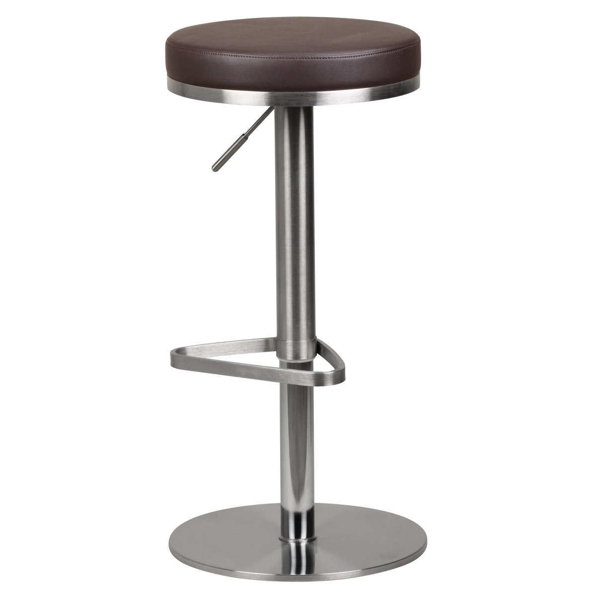 Questo sgabello da bar moderno presenta una struttura in acciaio inox cromato con seduta rotonda e imbottita in similpelle marrone per un comfort superiore. L’altezza è regolabile da 57 a 82 cm, consentendo un adattamento preciso a corpo e spazio.