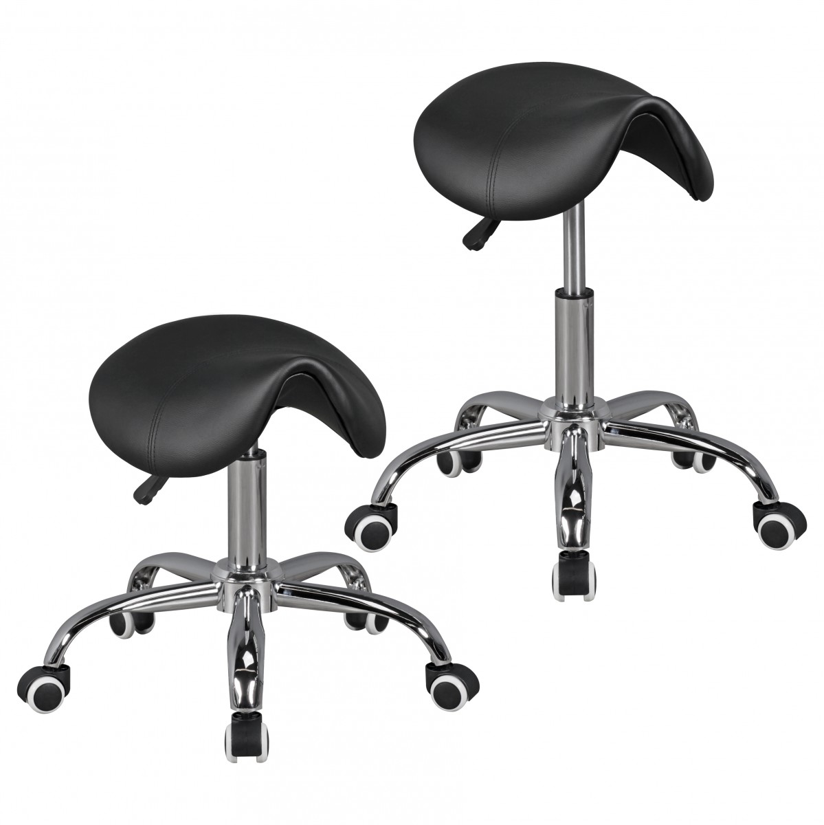 Info sui prodotti "Sgabello a sella MENTON nero con rivestimento in ecopelle | Regolabile in altezza 48-60 cm | Seduta 38x35 cm"