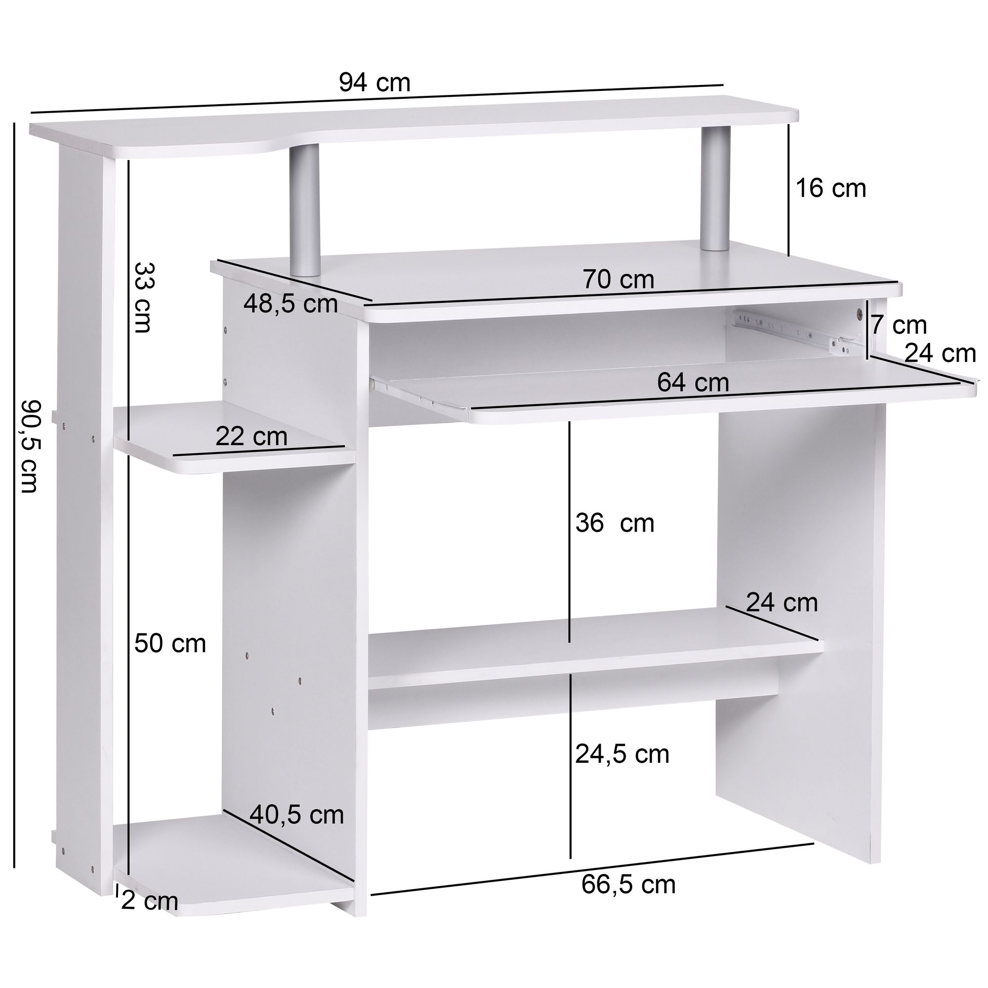 Scrivania bianca per computer | 94x90,5x48,5 cm | Pannello truciolare con cassetto tastiera