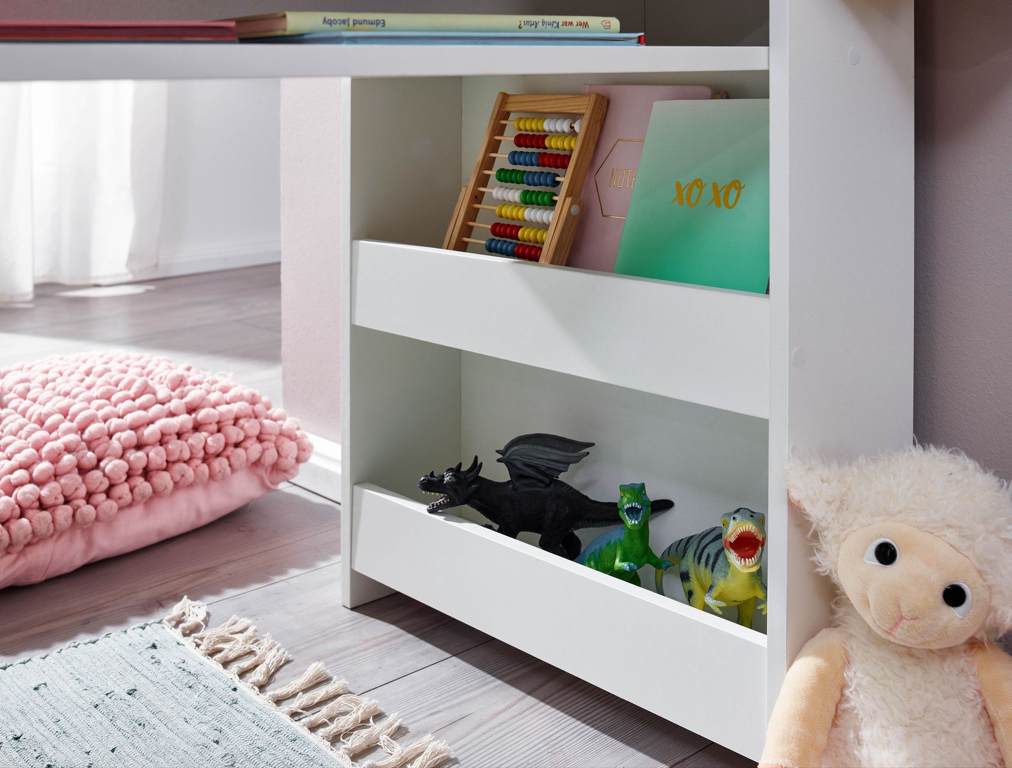 Info sui prodotti "Scrivania per bambini bianca in pannello melaminico | 90x50x110 cm | Scrivania moderna con spazio di archiviazione"