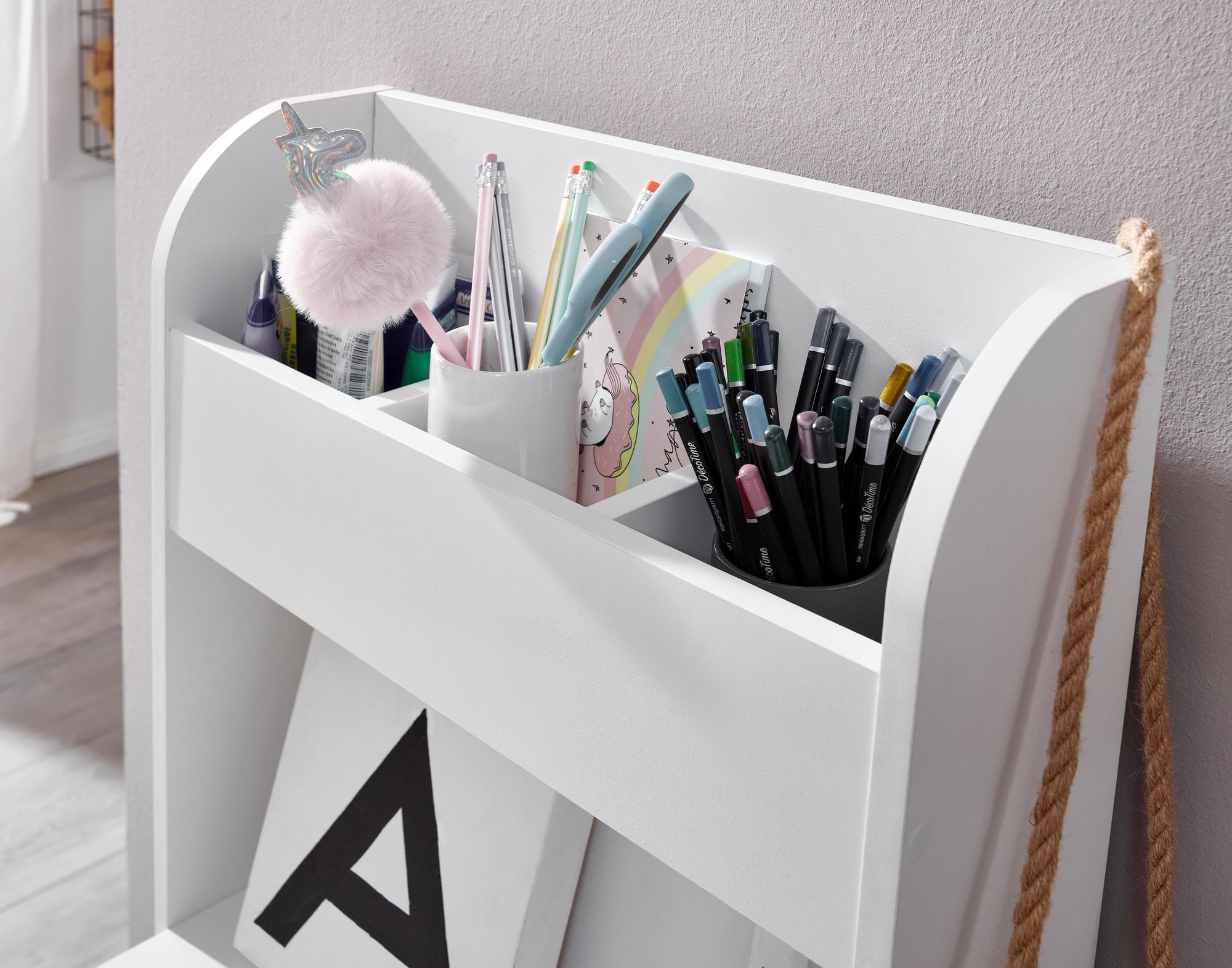 Vantaggi: Arredo funzionale e duraturo che favorisce l'autonomia del bambino e mantiene ordinata l'area di lavoro.