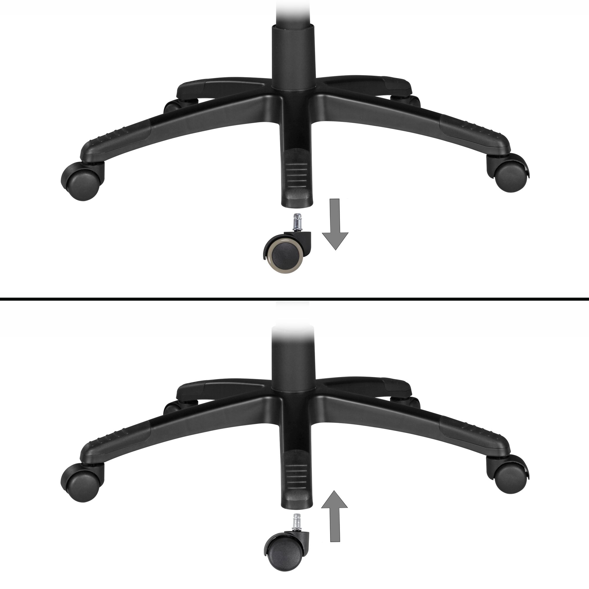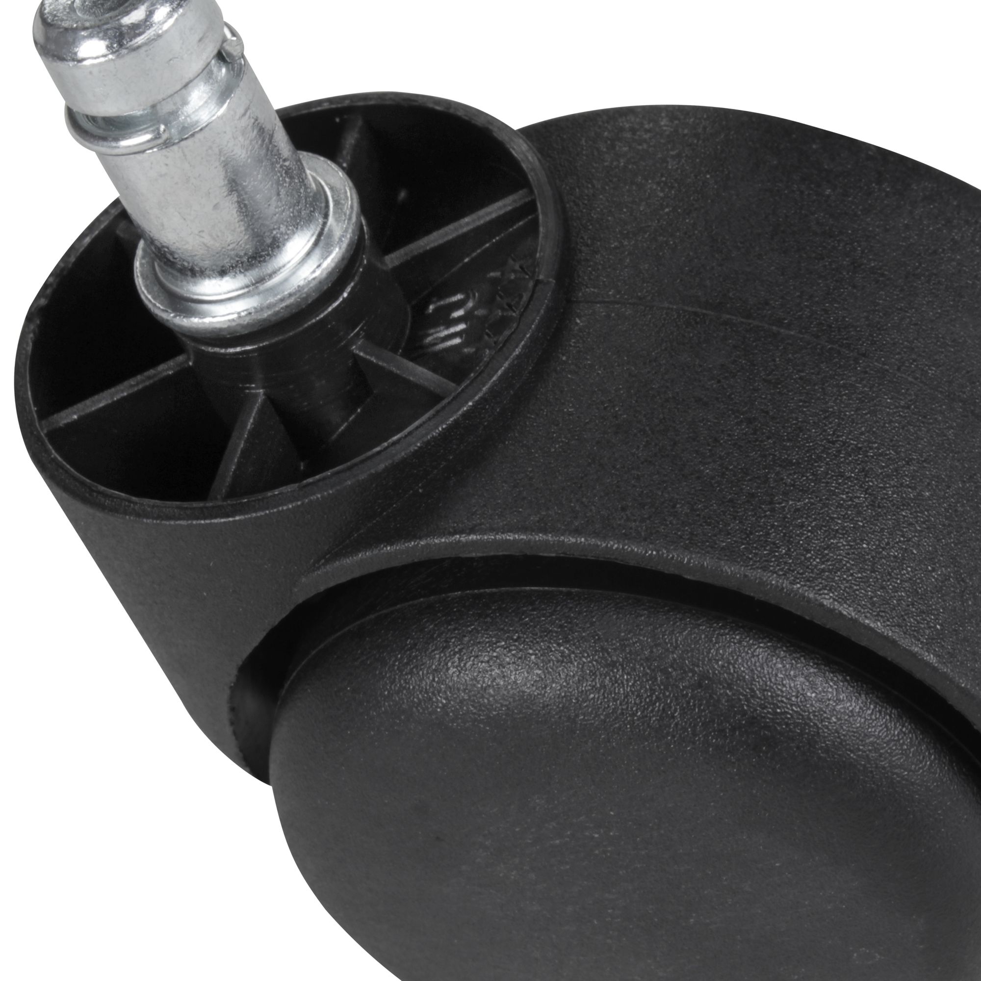 Questo set di 5 ruote frenate in poliuretano nero è progettato per sedie da ufficio con perno da 11 mm. Ogni ruota ha un diametro di 50 mm, offrendo un movimento fluido e controllato su moquette e feltro.