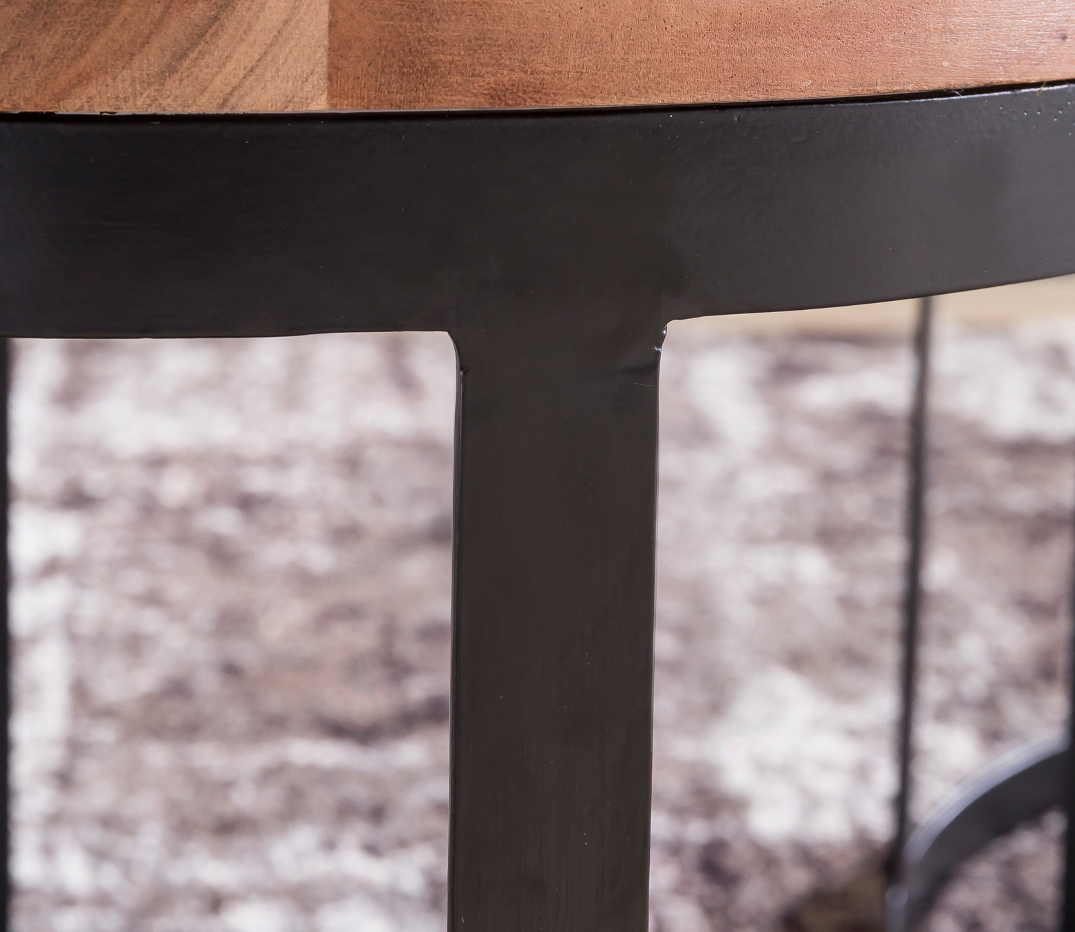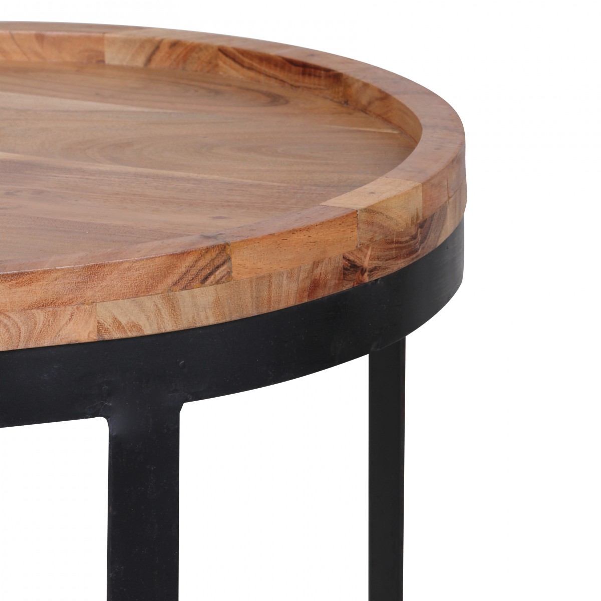 Questo set di 2 tavolini AKOLA è realizzato in legno massello di acacia con struttura metallica robusta, ideale per un soggiorno in stile rustico moderno. Ogni tavolo presenta una finitura naturale che mette in risalto una venatura calda e unica del legno.