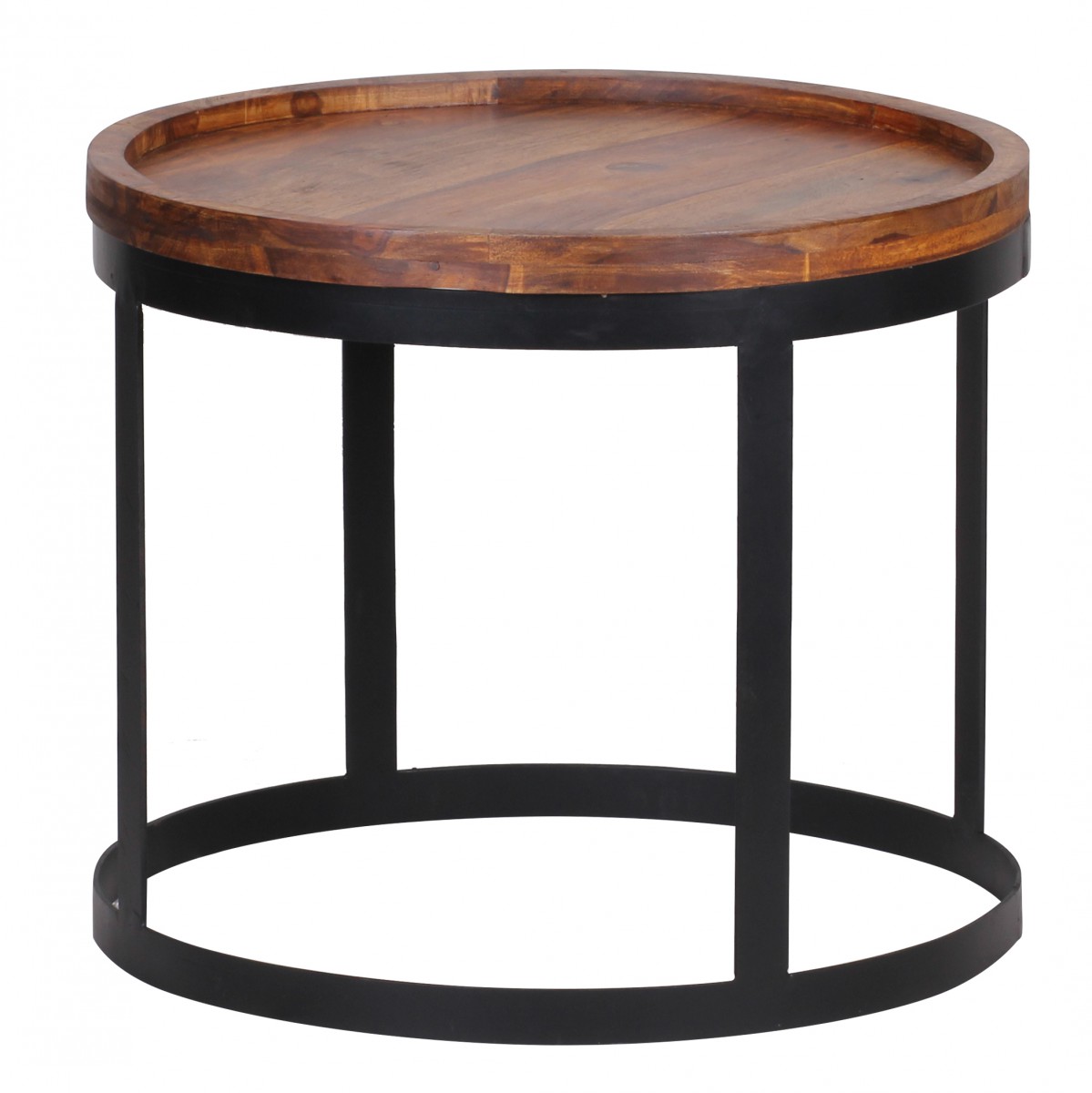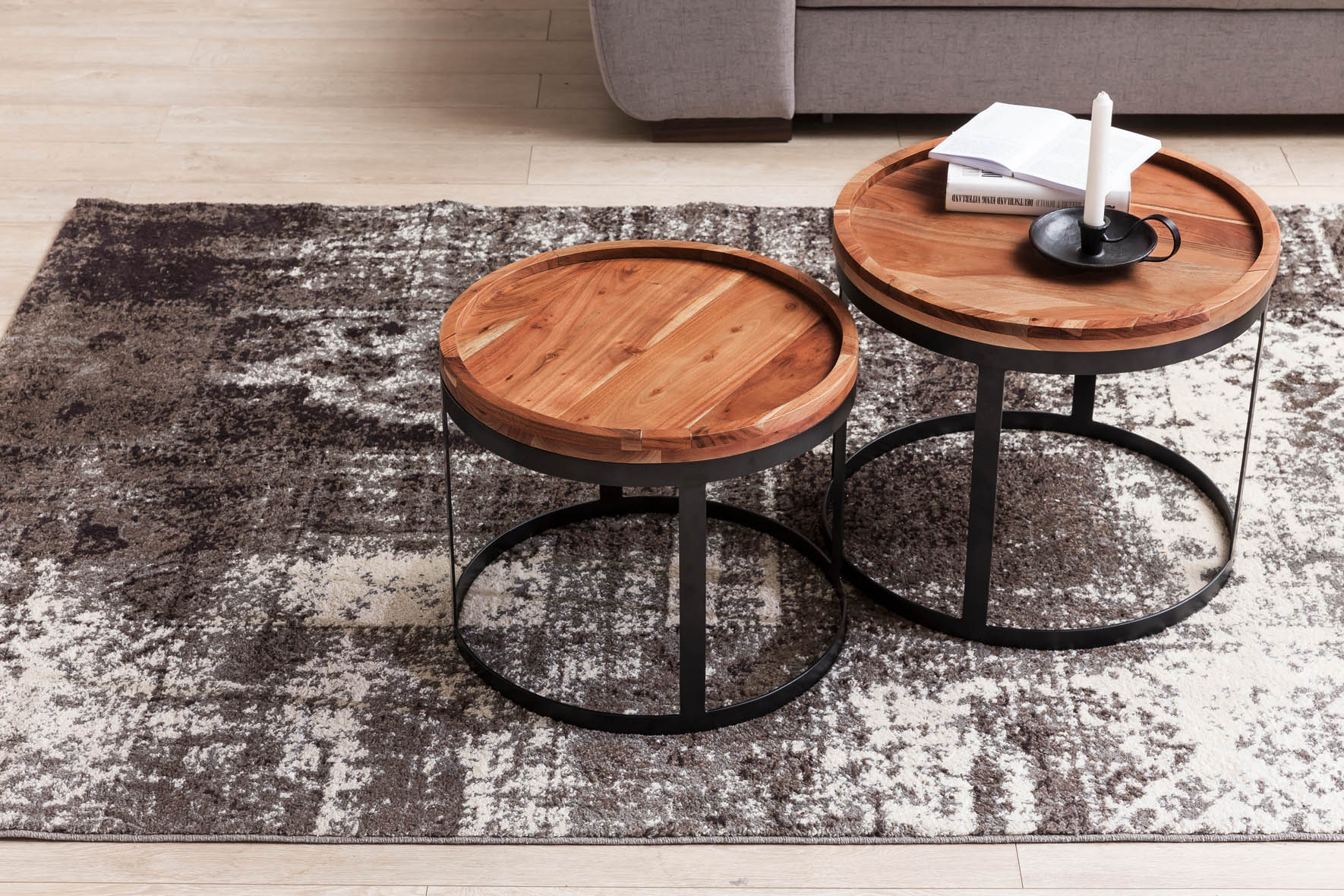 Questo set di 2 tavolini laterali AKOLA BAGLI in legno massello Sheesham unisce eleganza e funzionalità per il tuo soggiorno. I piani rotondi con bordo decorativo offrono ampio spazio e creano un'atmosfera calda grazie alla finitura naturale del legno.