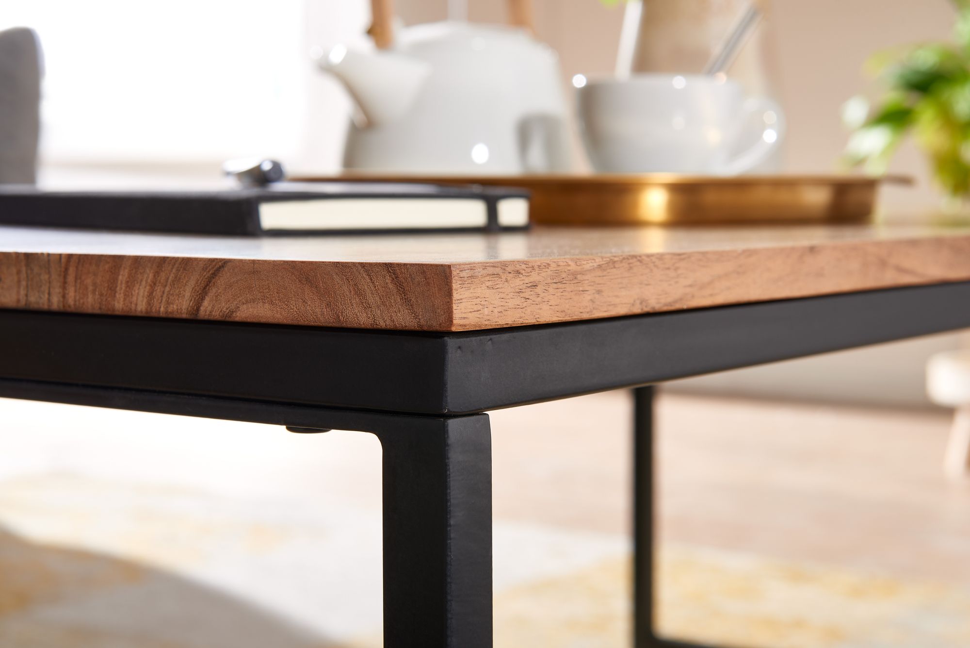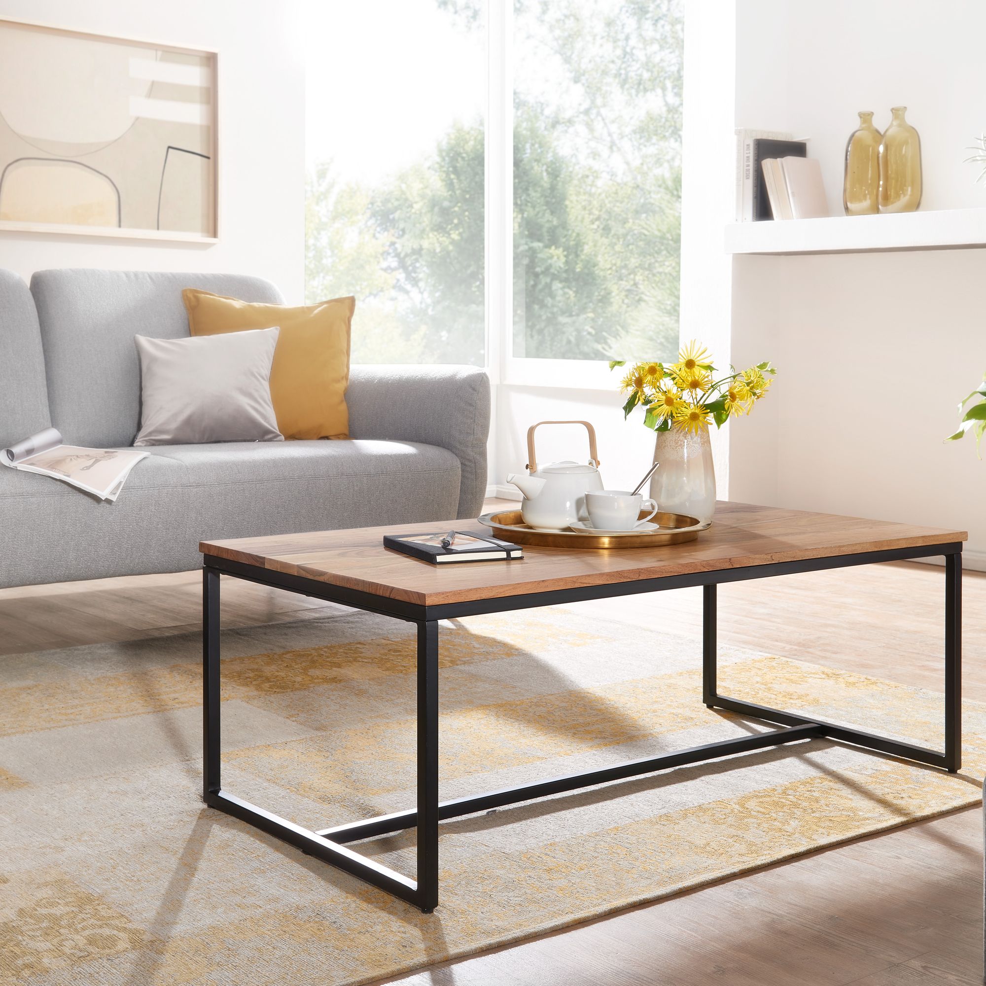 Info sui prodotti "Tavolino 110x60x40 cm tavolino in legno massello metallo tavolino soggiorno acacia"