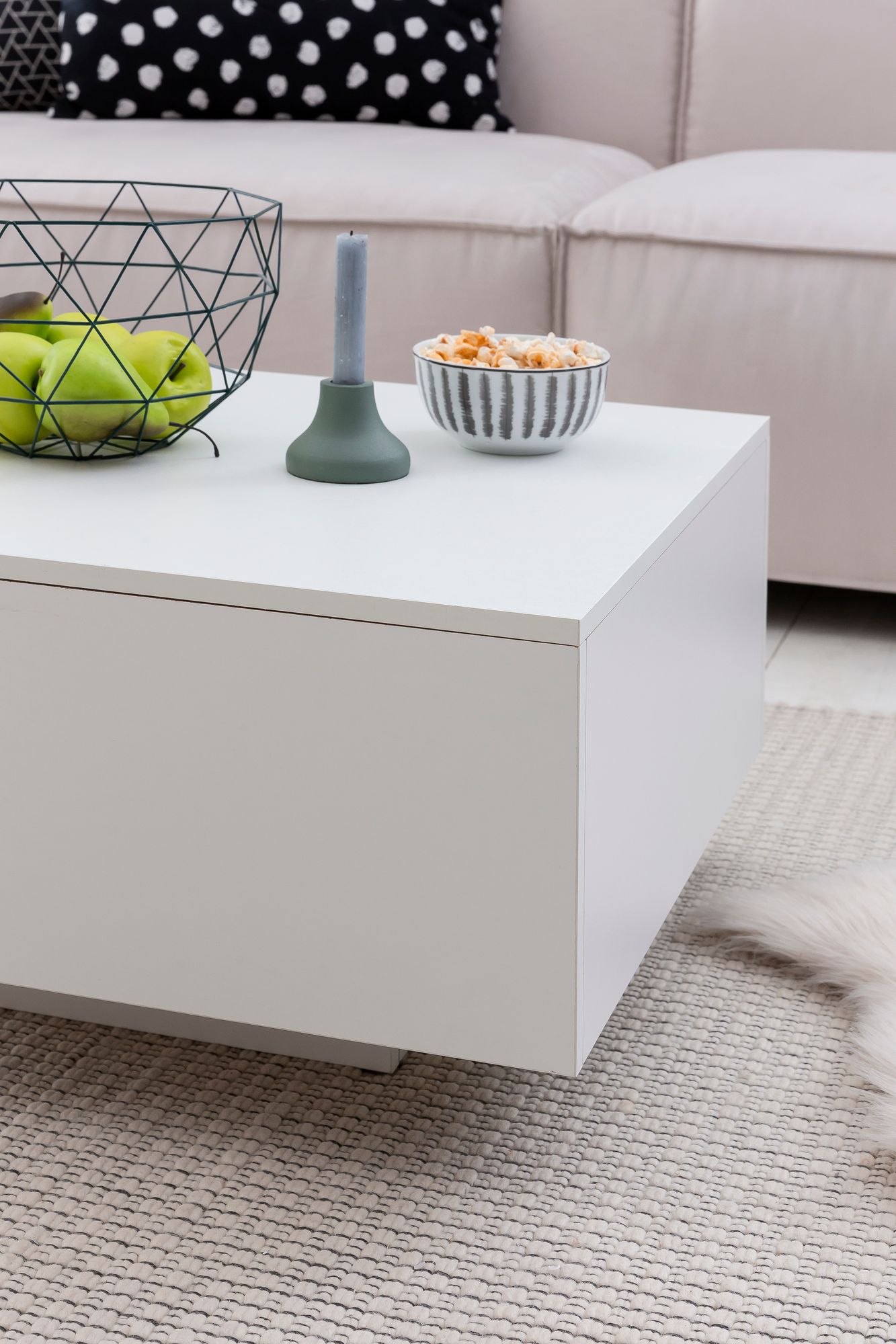 Questo tavolino da caffè moderno in legno bianco unisce design elegante e funzionalità per valorizzare il tuo soggiorno. La spaziosa superficie di 60 x 60 cm offre spazio ideale per posizionare oggetti decorativi o il tuo caffè.