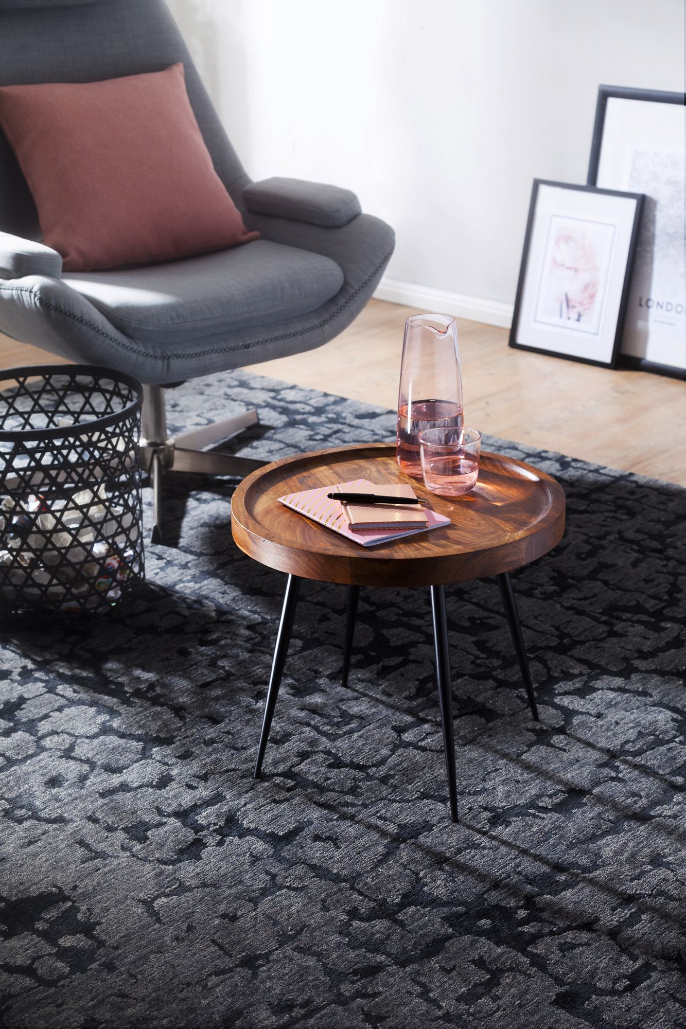 Info sui prodotti "Tavolino in legno massello Sheesham marrone | Metallo nero opaco | 46x40x46 cm"