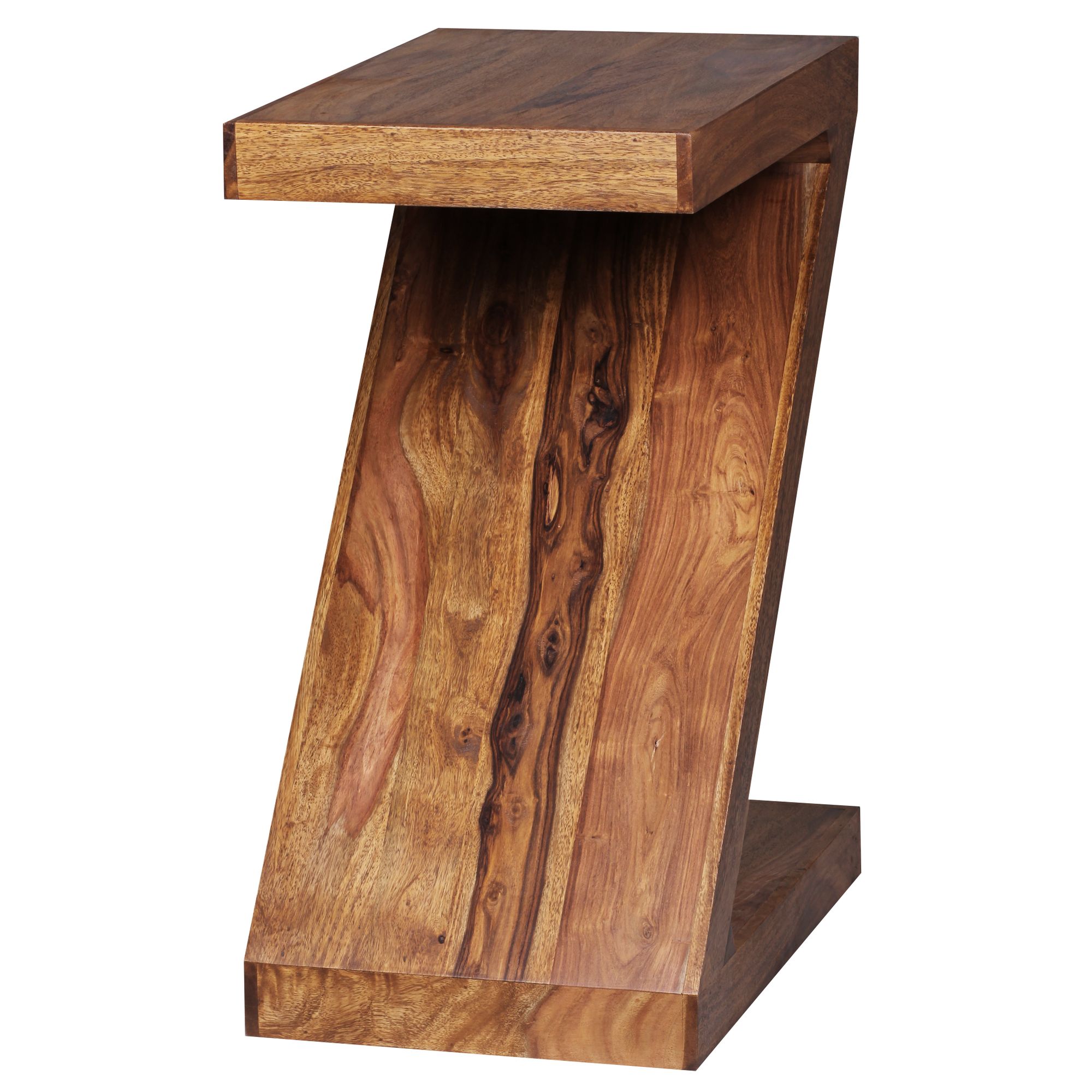 Il tavolino MUMBAI in legno massello Sheesham marrone presenta un design elegante a forma di Z, offrendo spazio extra per giornali o oggetti decorativi. Ideale per aggiungere un tocco naturale e funzionale al tuo ambiente.