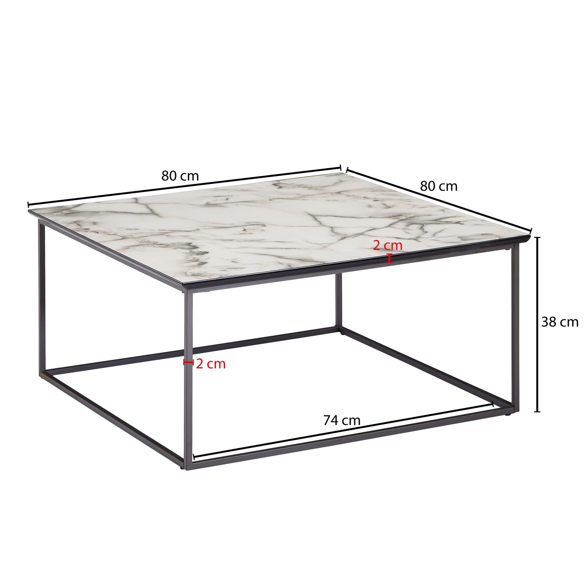 Info sui prodotti "Tavolino quadrato 80x38x80 cm | Piano bianco effetto marmo | Gambe in metallo nere"
