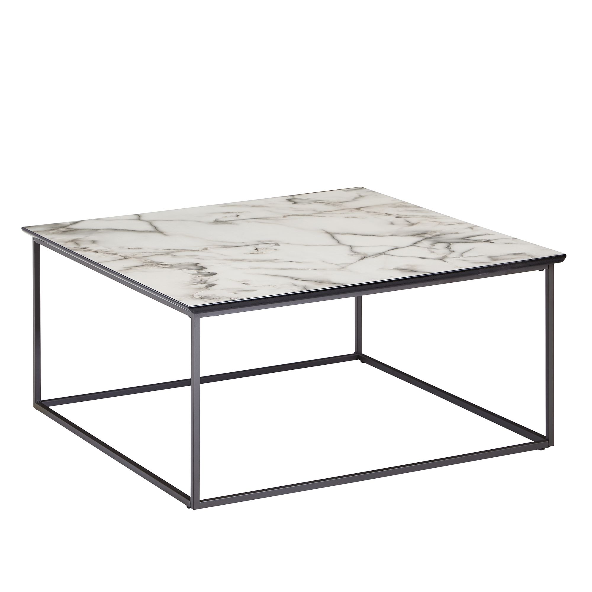 Tavolino quadrato 80x38x80 cm | Piano bianco effetto marmo | Gambe in metallo nere
